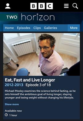 《地平线》Horizon由BBC制作,至今已经播出了五十季,一千多集。“地平线节目的目标是提供世界上最伟大的科学家和哲学家一个可以交流他们的好奇、观察和看法的平台,并将他们对世界的新看法引入到我们的日常知识。” 本期所讲肥胖是现代人类最大的敌人。那么节食是否会带来健康与长寿,这一直是人们迫切希望得到答案的问题。《BBC地平线:节食与长寿》从几个简单的例子来验证,表达出科学合理的节食对健康有益的观点。感兴趣的朋友可以下载来看看。收起